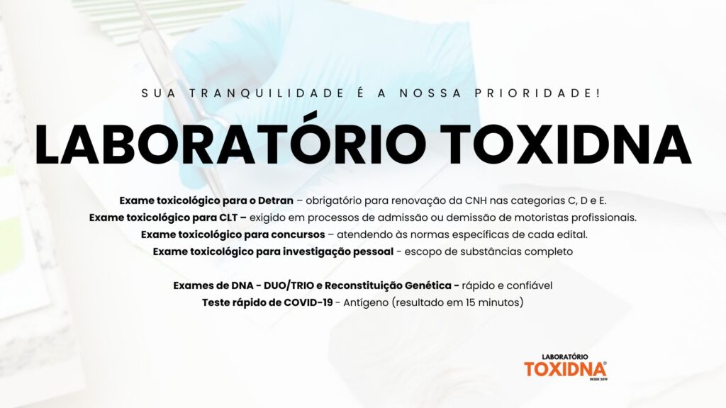 Bebida alcoólica: Abstinência desejável por 1 semana antes da realização do teste.
